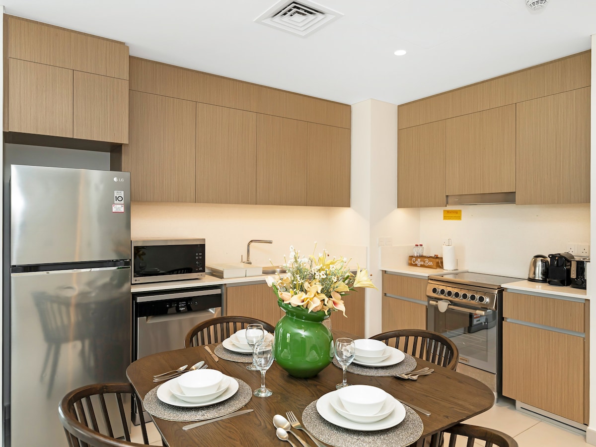 Tu familia estará cerca de todo cuando te hospedes en este lugar céntrico. Disfruta del lujo en nuestro 2BHK en el lugar más hermoso de Dubái ,con vistas panorámicas al paisaje urbano y al arroyo. Aprovecha los servicios del edificio de primera categoría, como una piscina infinita, gimnasio, zona de juegos para niños, piscina infantil y sala multiusos. A ☑️10 minutos del Burj Khalifa, Dubai Mall y SHZ. ☑️14 minutos a los aeropuertos de Dubái A ☑️10 minutos del Santuario de Vida Silvestre A ☑️18 minutos de Palm Jumairah