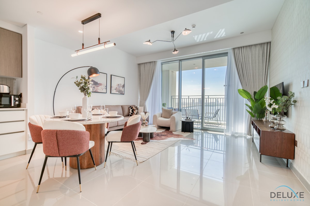 Alójate en un apartamento de 1 dormitorio de estilo único en el lujoso Palace Residences frente al mar en el puerto de Dubai Creek. Esta vivienda de 66 m² está totalmente equipada con todo lo que necesitas, con una luminosa sala de estar y un balcón privado con impresionantes vistas al horizonte. Los huéspedes disfrutan de servicios de primera calidad, como una piscina de primera, un gimnasio moderno y seguridad las 24 horas, los 7 días de la semana. Perfectamente comunicado, a solo 15 minutos del centro de Dubái y del aeropuerto, es la base ideal para tu estancia en Dubái.