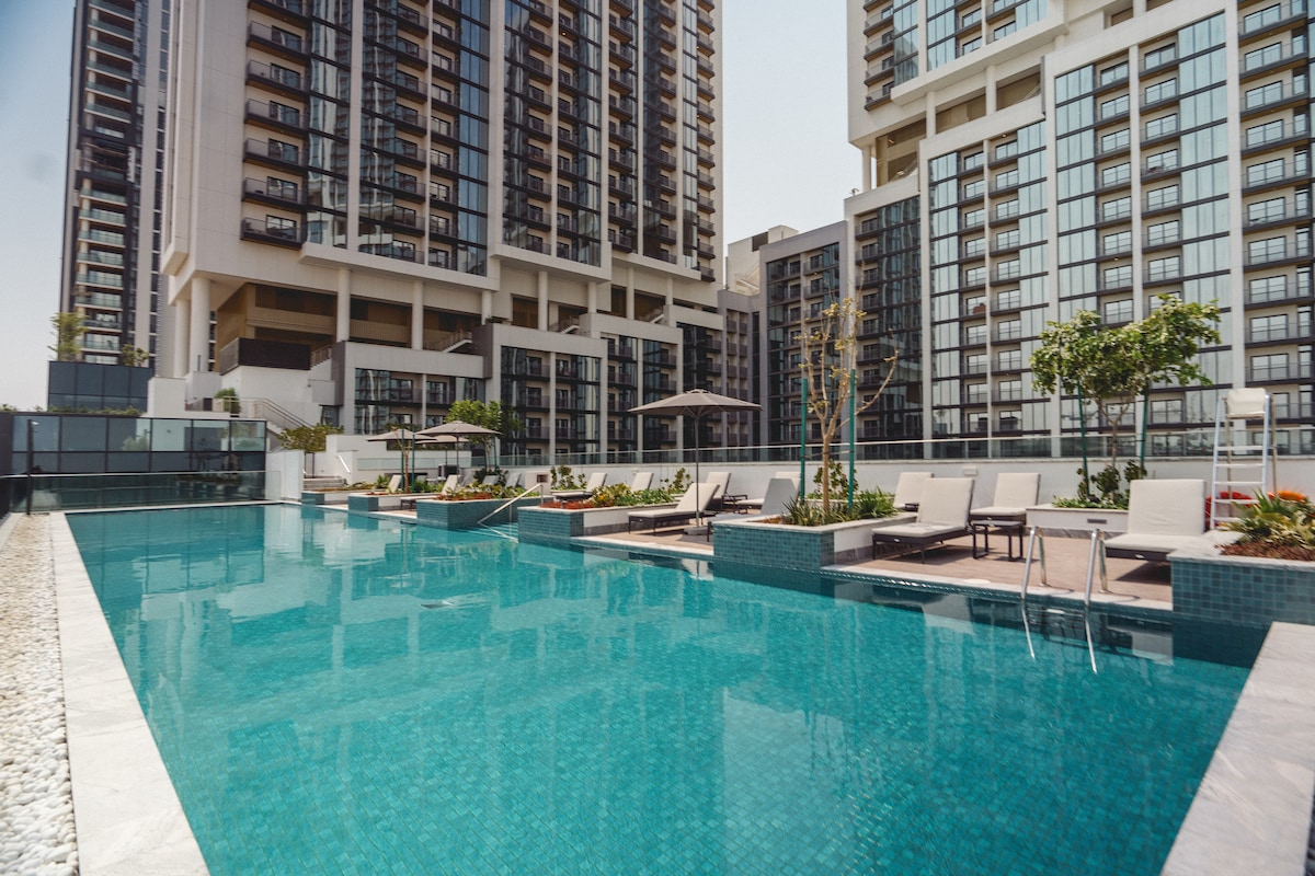 Disfruta de tu estancia en Dubái en un elegante apartamento de 2 dormitorios y 2 baños a solo 10 minutos de Burj Khalifa en la zona privilegiada de Sobha Hartland. Relájate junto a la piscina, haz ejercicio en el gimnasio o en el sky lounge y deja que los niños jueguen en las zonas dedicadas. Cocina totalmente equipada, ropa de cama, toallas y aparcamiento gratuito incluidos. Perfecto para familias, amigos o viajes de negocios, con todas las comodidades y servicios que necesitas para una estancia inolvidable en el corazón de la ciudad.