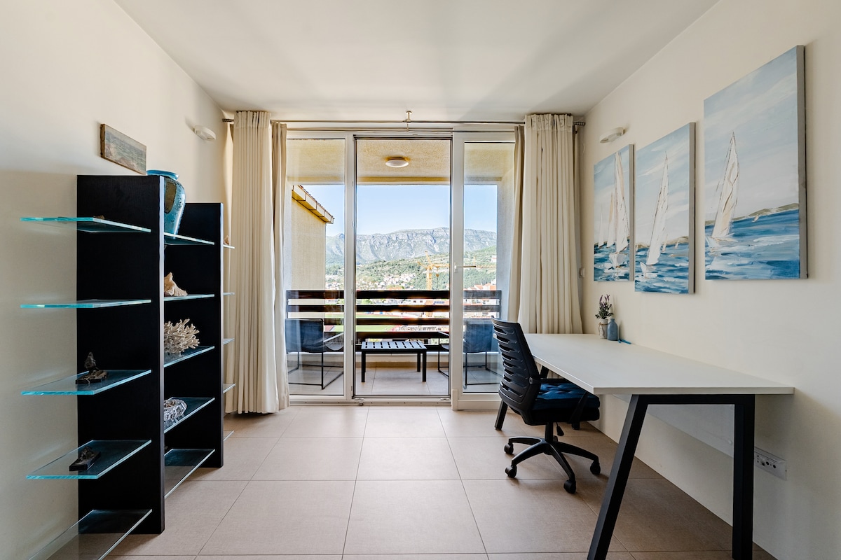 Casa nueva de 4 dormitorios rodeada de naturaleza, con 2 baños, balcón con una vista impresionante, cocina totalmente equipada, gimnasio en el gran solárium y 3 plazas de estacionamiento. La casa está en un vecindario tranquilo, rodeada de montañas, a solo 300 metros del mar. También estás a 10 minutos en uber/taxi del casco antiguo de Dubrovnik. Como lugareños en Dubrovnik, ofrecemos servicios de conserjería sin tarifas a las islas locales, los países vecinos y cualquier otra atracción local que te pueda interesar.