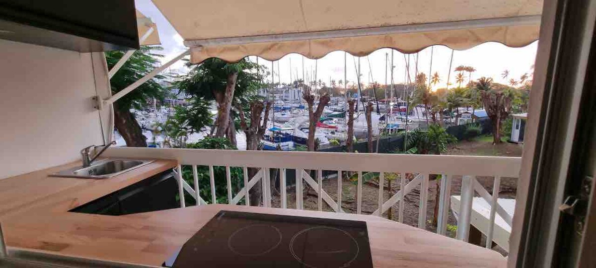 En una villa ubicada en una zona residencial muy tranquila con vistas a los campos de caña de Lotissement Cocotte en Ducos, a un cuarto de milla (500 metros) de todas las tiendas y desde la carretera a las playas del sur de Martinica, este apartamento de 500 pies cuadrados con aire acondicionado tiene capacidad para 2 a 4 personas, ofrece impresionantes vistas de Fort-de-France Bay : miembro del club de las 43 bahías más hermosas del mundo...