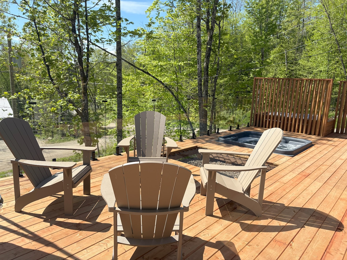 ★ Uno de los chalés más singulares de Mont-Tremblant ★ ¡Casa del árbol única y aislada, totalmente de vidrio blanco, con vistas impresionantes a las montañas de Mont-Tremblant! La cabaña es un espacio arquitectónico majestuosamente acristalado que combina la simplicidad natural y el lujo contemporáneo, a 10 minutos del pueblo de Mont-Tremblant, Ski Tremblant. Ubicada en el extremo del acantilado y con un espacio habitable totalmente acristalado, Bathtub con vista, la terraza panorámica y la bañera de hidromasaje privada ofrecen una experiencia de relajación inigualable. Diseñadora canadiense.