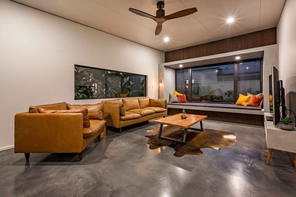 Esta elegante y tranquila villa te permite a ti y a tu bebé peludo* el espacio para relajarse, descansar y rejuvenecer. Toques de lujo que incluyen sábanas de bambú de 1000 hilos, cama tamaño king de lujo, TV de 64 pulgadas, salón de diseño y sofá cama al aire libre con vistas al jardín para garantizar que te sientas tan relajado como cuidado. Disfruta de la reclusión, los sonidos de la vida silvestre y el espacio verde a solo minutos de los servicios de Dunsborough, playas vírgenes para perros y surf de calidad, en una región bendecida con bodegas de 5 estrellas, restaurantes, galerías y productos locales excepcionales.