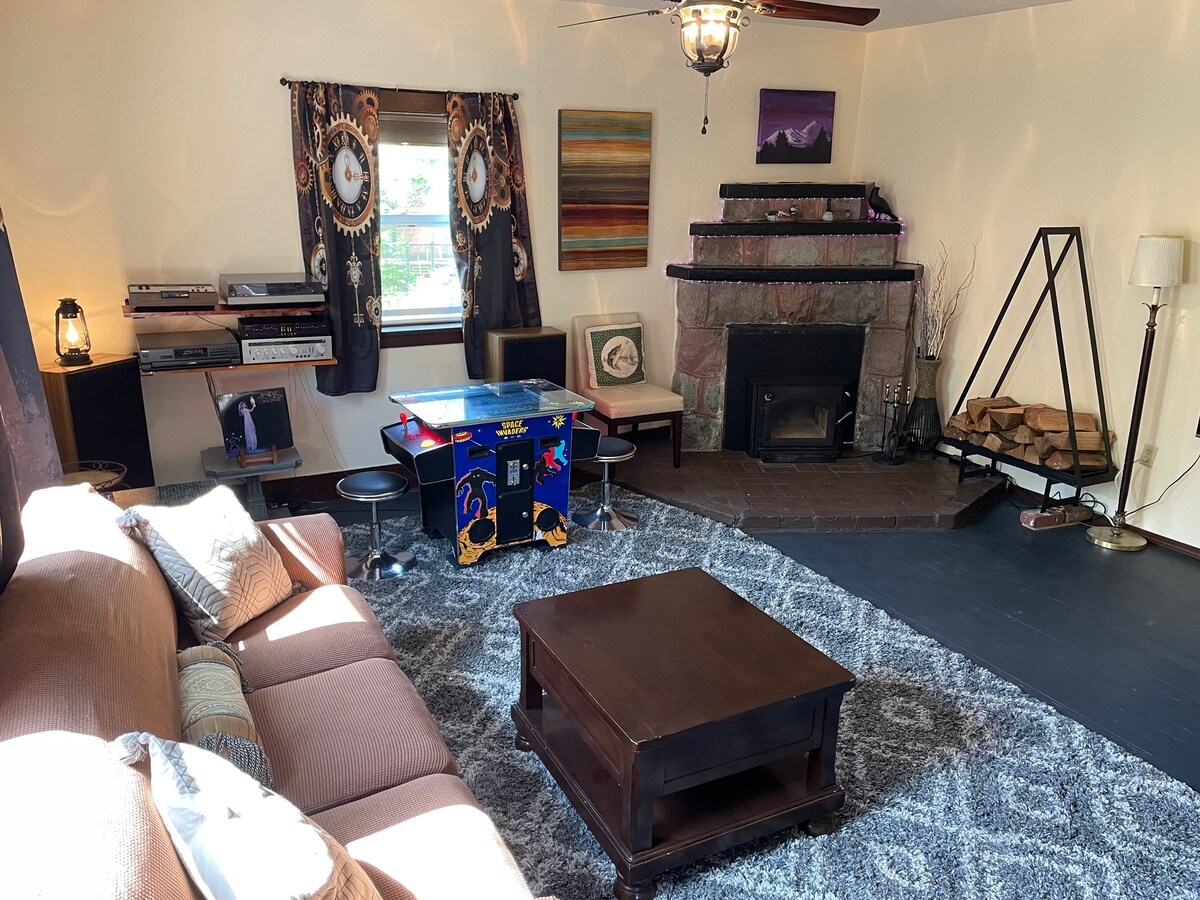 This unique home is decorated as a fun throwback with a waveless waterbed, vintage stereo system with classic rock vinyl records and 90’s era CDs, and a retro 80’s video game stocked with over 400 classic arcade games like Pac-Man and Frogger. Play FREE! It has a large screen smart tv, full kitchen, and a pub table for family meals and board gamers. Pet friendly with a fenced backyard. We are 420 friendly with a free cannabis preroll waiting for you. Minutes from Mt. Shasta hiking trails.