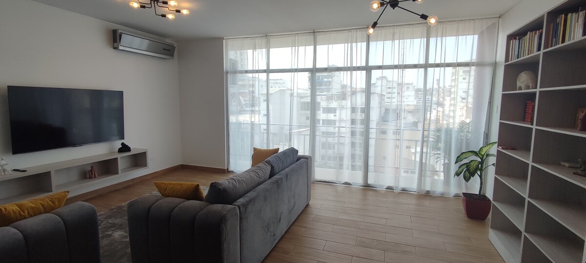 Suite de lujo dentro de ciudadela privada totalmente segura, junto al C.C. San Marino y nuevo Supercines Imax El alojamiento es independiente y se encuentra en el segundo piso alto. Cuenta con TV Smart de 55" en mueble giratorio, Netflix, Wifi. La ciudadela cuenta con malecón, circuito para caminar, guardianía las 24 horas, estacionamiento seguro.