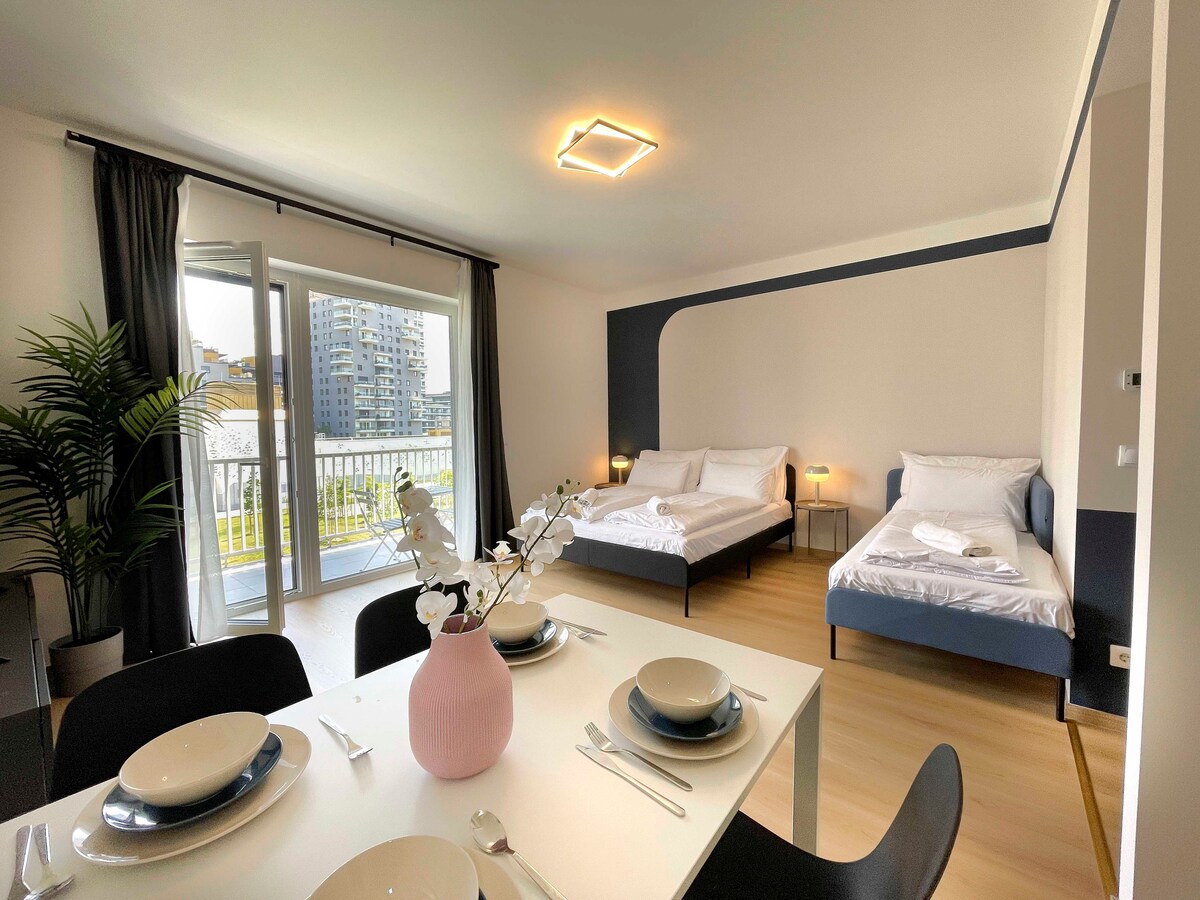 ¡Bienvenido a nuestro apartamento prémium en un edificio completamente nuevo, ubicado en una zona tranquila y emergente cerca del Danubio! Perfecto para un grupo de 4 personas, el espacio ofrece aire acondicionado, calefacción de pared, terraza y TV para el máximo confort. Disfruta de las comodidades del edificio, como un parque infantil, tenis de mesa y ascensor. Con aparcamiento gratuito y excelentes conexiones de transporte público, parada de autobús justo a las afueras y metro M4 (Kelenföld) a solo 20 minutos, tendrás fácil acceso a la ciudad mientras disfrutas de un refugio tranquilo y elegante.