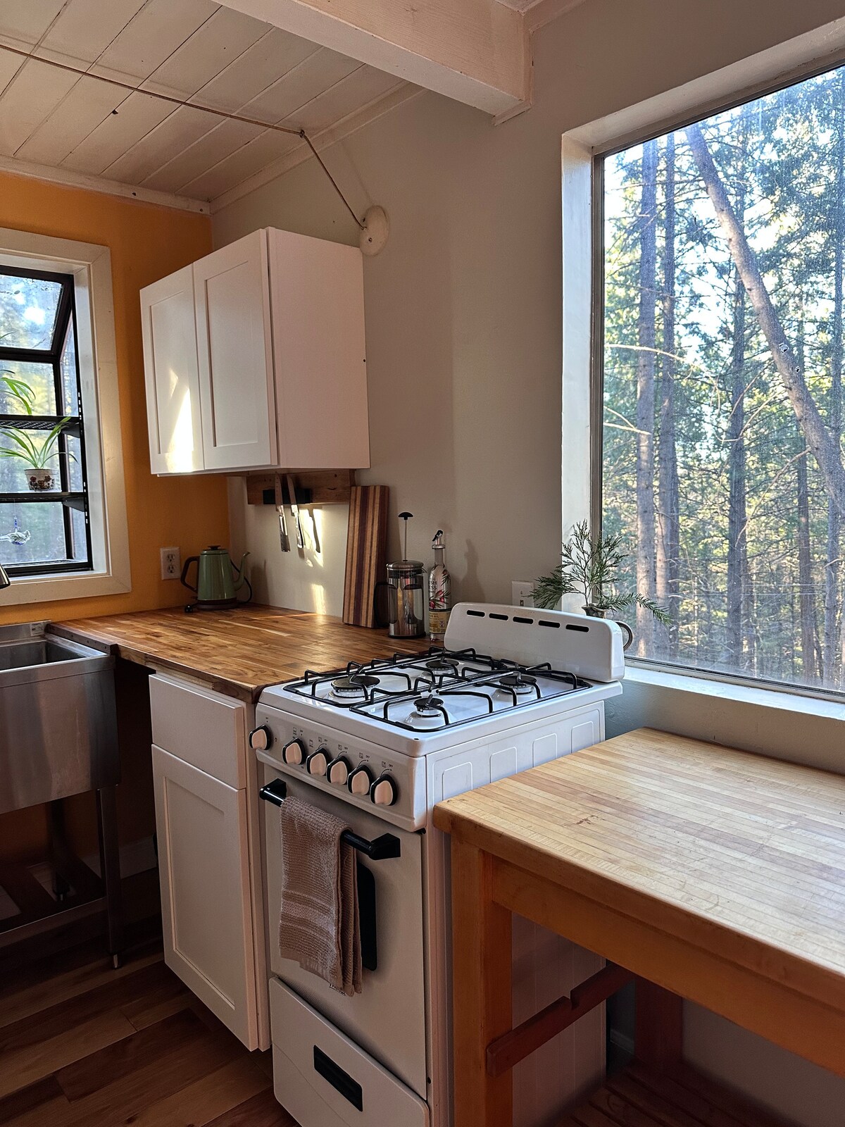 A beautiful 550 square foot self built house in the woods. Many of the materials used in this house were either reused from old local houses or milled on the property itself, giving it a lot of character, while remaining modern. Quiet, private and surrounded by trees. 5 minutes from downtown Nevada City. Near a variety of outdoor activities. Down a private driveway with lots of outdoor space to enjoy. Equipped with a full kitchen, BBQ, big bathtub, art, extra bedding, TV, library and washer.
