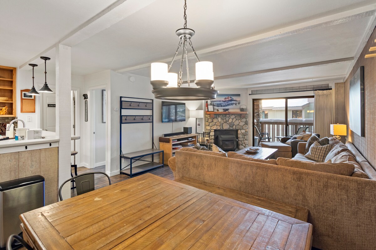 Un apartamento de esquí actualizado con vistas fenomenales a las Altas Sierras. Este apartamento de 2 dormitorios y 2 baños se encuentra en Sunstone Lodge, a pocos pasos del telesilla Eagle Express, para facilitar el acceso dentro y fuera de la montaña. Este apartamento puede alojar hasta seis personas con una cama tamaño king en el dormitorio principal, dos camas individuales en el dormitorio de invitados y un colchón extraíble de espuma viscoelástica en la sala de estar. Acurrúcate junto a la chimenea después de un día de esquí para ver una película en el televisor inteligente 4K de 65 pulgadas del salón.