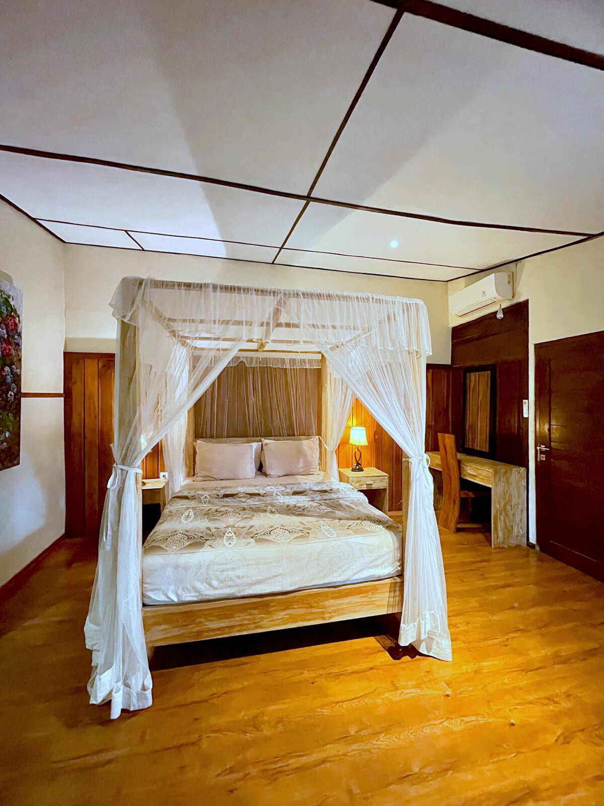 El Bale Daja es una unidad independiente que forma parte de Canang Sari Homestay, situada en una casa balinesa con un diseño tradicional bellamente elaborado. La unidad tiene baño privado, cocina y aseo, la terraza ofrece vistas a los exuberantes jardines tropicales balineses. Se proporcionan desayunos gratuitos como cereales, leche, fideos y huevos para la primera mañana. Durante la estancia, únete a nuestro recorrido a pie, recorrido textil, clase de bienestar o clase de cocina. Ponte en contacto con nosotros si esta habitación está reservada o si necesitas una habitación más pequeña.
