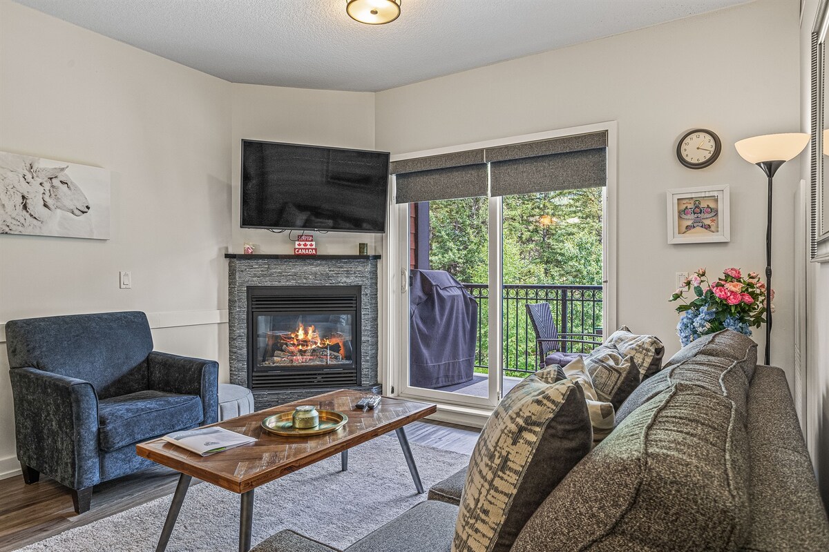 ¡Comienza tu escapada a las Montañas Rocosas en este hermoso apartamento con un pase de parques de cortesía! A pocos pasos del centro de Canmore, es la base perfecta para tu aventura. ✔ Piscina, jacuzzi y tobogán acuático ✔ Patio que da a un tranquilo patio con impresionantes vistas a la montaña ✔ Capacidad para 6 personas: ideal para familias ✔ Estacionamiento U/G climatizado ✔ Cama tamaño king con baño privado ✔ Aire acondicionado ✔ Chimenea de gas ✔ Wifi rápido y cable ✔ Cocina totalmente equipada Cuarto ✔ de lavandería en la habitación ¡Reserva tu estancia en la montaña en Canmore con nosotros hoy mismo!
