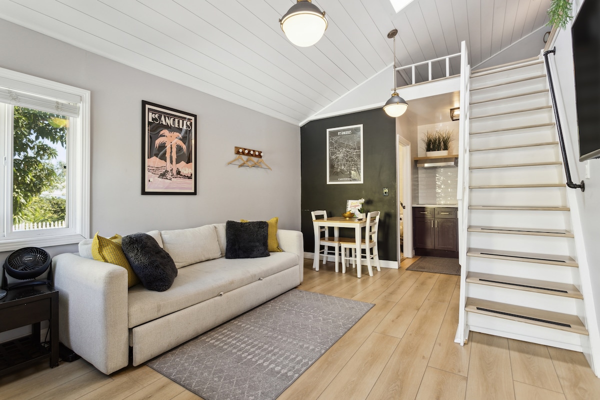 Beautifully designed guesthouse in El Sereno. 100% eco-friendly, compostable products throughout the space, and yes even the K Cups. My wife and I designed our guesthouse based off of our experiences traveling. We're excited to include little details such as filtered water, wireless phone charger, and a white noise machine. Hit us up with any questions!