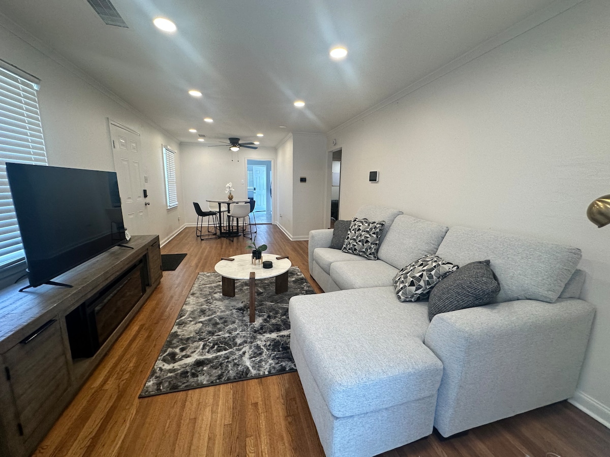 ¡Encantadora casa de dos dormitorios con un gran patio trasero y camas cómodas! Este alojamiento está situado en el centro de muchas atracciones clásicas de Memphis, como: Jardín Botánico, Galería Dixon: 2 minutos Midtown (Memphis Zoo, Overton Park, Sun Studio): 10-15 minutos Centro (Beale Street, FedEx Forum): 15 minutos Graceland: 15 minutos Además, hay varios restaurantes y tiendas de comestibles (incluidos Kroger, Whole Foods y Sprouts) en un radio de aproximadamente 3 millas.
