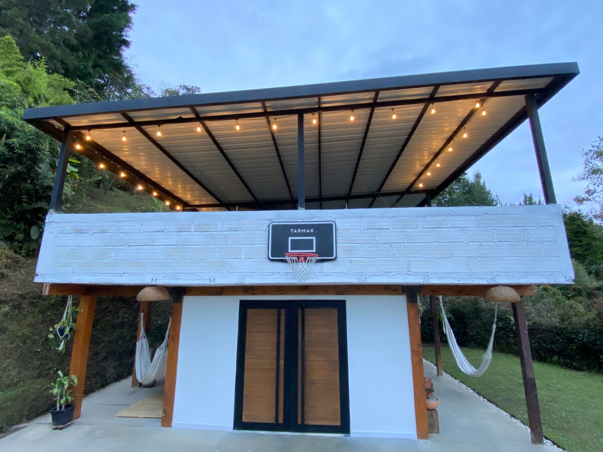 Casa campestre con zonas verdes y hermosas vistas , ideal para viajeros que quieran desconectarse con la naturaleza o teletrabajar en un ambiente tranquilo; completamente equipada se divide en 2 habitaciones, 2 baños, sala-comedor-cocina y terraza en exterior, ubicada a 15 minutos del aeropuerto internacional Jose maría cordova ( ofrecemos transporte), a 5 min de la zona urbana y a 10 minutos del parque de Rionegro y de San Antonio de Pereira. El jacuzzi tiene un costo adicional de 30 mil la hr