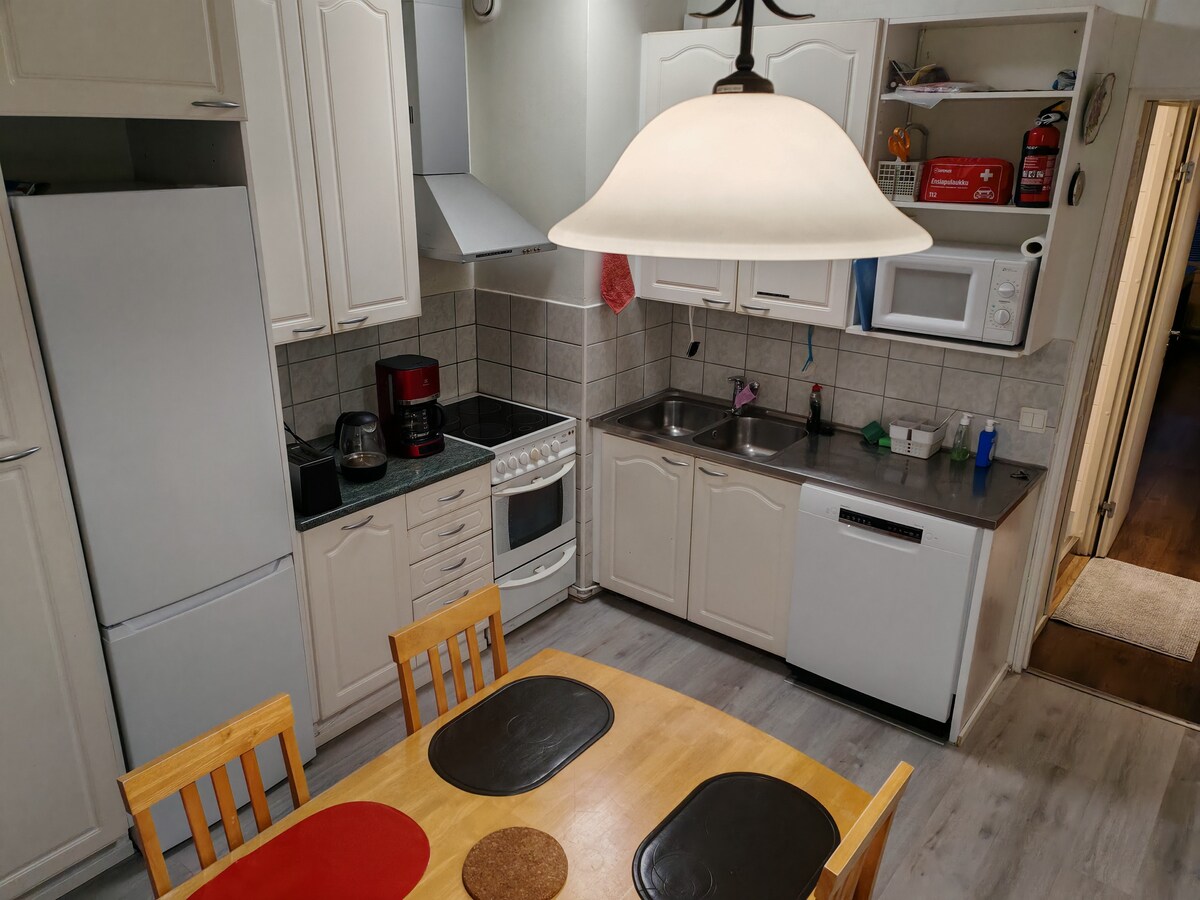 La propiedad ubicada en Hakakatu 6 es un espacio recientemente renovado y acogedor para 1-14 plazas. El alojamiento cuenta con dos camas de 90 cm de ancho, que se pueden unir para formar una cama de matrimonio extra ancha. En el sofá cama, puede relajarse incluso con un libro y, si es necesario, también se convierte en una cama de 120 cm de ancho. Las lujosas sábanas de satén de algodón garantizan un buen sueño. La cocina está bien equipada y el alojamiento también cuenta con lavadora. Jyväskylä está a solo 20 km y el aeropuerto a 5 km.