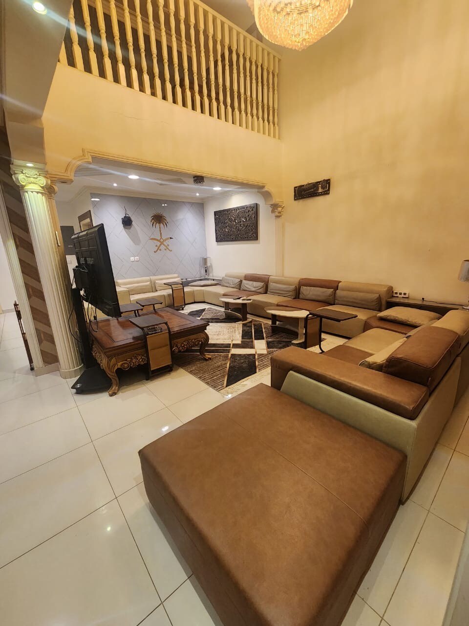 Este alojamiento único de ViP tiene su propio estilo. Distancia desde: - - Parque Riyadh - 10 minutos - Historic Diriyah Park 18 minutos. - Aeropuerto Internacional King Khalid 24 min - Riad City Boulevard 18 minutos. - Wonder Garden a 19 minutos. - King Abdullah Financial City (16 ( KAFD min) - A través de Riad 21 min - El tren de la estación de metro a 4 minutos. (Cocina completa disponible para uso completo + lavadora + plancha de vapor + lavavajillas + parrilla + parrilla + estufa de gas + tostadas y todos los electrodomésticos de cocina completos) (Rincón de café completo disponible) Alojamiento de alta gama y la ubicación estratégica
