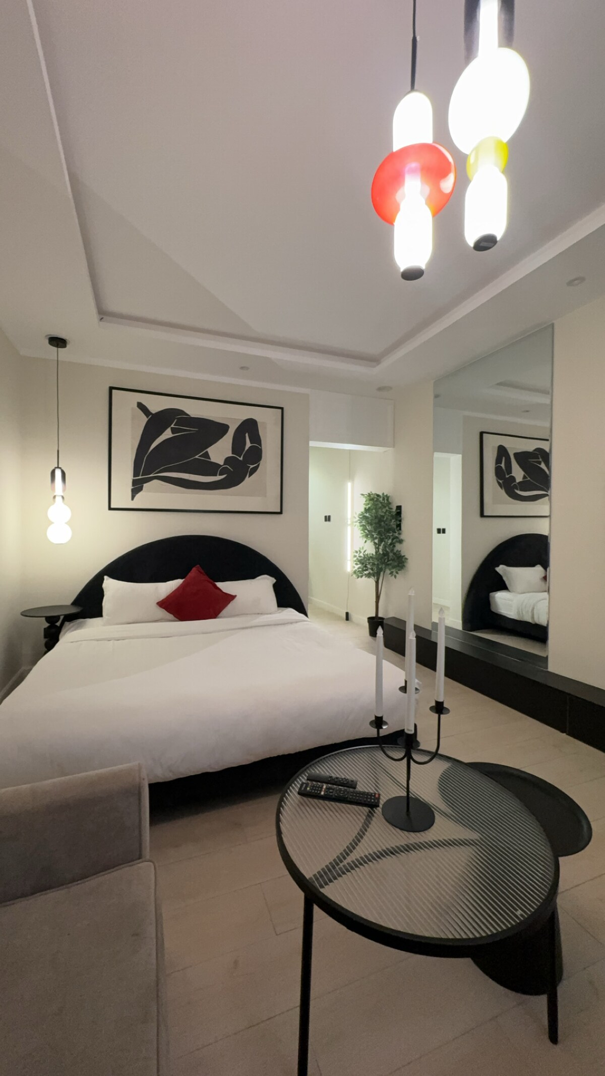 El apartamento está situado en uno de los barrios más exclusivos del norte de Riad, el barrio de Al-Rabie, y está diseñado con los últimos muebles de lujo. Cuenta con una pantalla inteligente de 75 pulgadas, Internet de alta velocidad y una máquina de café Nespresso. El apartamento cuenta con entrada independiente y total privacidad. Frente al complejo hay un paseo marítimo. Está a 15 minutos del bulevar de Riad, a 10 minutos del centro financiero King Abdullah y a 15 minutos del aeropuerto internacional King Khalid, sin pararse en ningún semáforo. También hay suscripción a (NETFLIX - Shahid) Accesibilidad para los huéspedes Entrada independiente