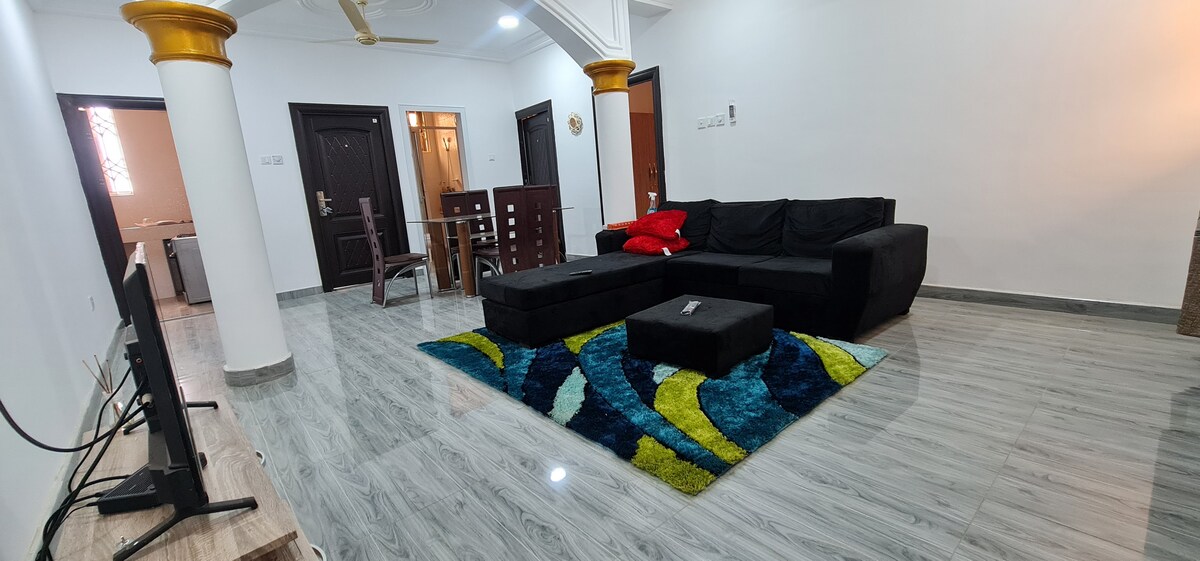 Escápate y relájate con toda la familia en este lugar tranquilo, en KAS Valley Estate, Oyibi, a solo 20 km del aeropuerto. Acogedora propiedad que ofrece serenas y hermosas vistas a la colina. Disfruta de una relajante escapada de fin de semana con todas las comodidades únicas. Reserva tu estadía hoy y disfruta de una comodidad real con tus seres queridos. Características principales: •Habitaciones con aire acondicionado • Wifi gratuito para estancias cortas • Respaldo de energía solar •DStv para entretenimiento • Respaldo de agua •Gimnasio y piscina. •Estancias largas disponibles • Exclusivo para uso de los huéspedes