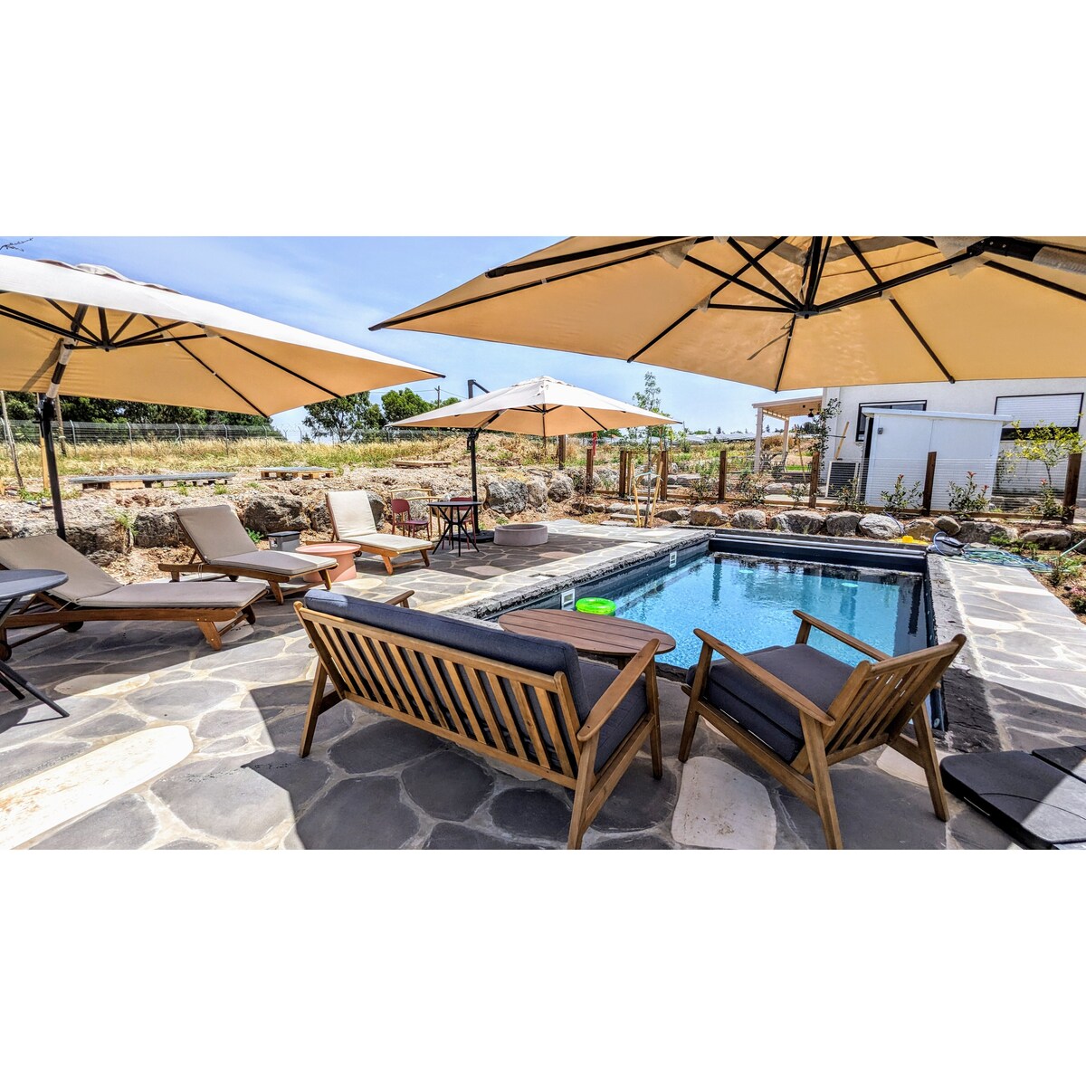 Una escapada en la cima, donde el infinito azul se encuentra con la tranquilidad serena. Con vistas al impresionante mar de Galilea, aquí es donde la paz y las impresionantes vistas se unen para una experiencia inolvidable. Aviso de seguridad importante Los niños deben estar bajo supervisión en todo momento. Tenga en cuenta que la zona del jardín está junto a un acantilado abierto y no está asegurada con una valla de protección.