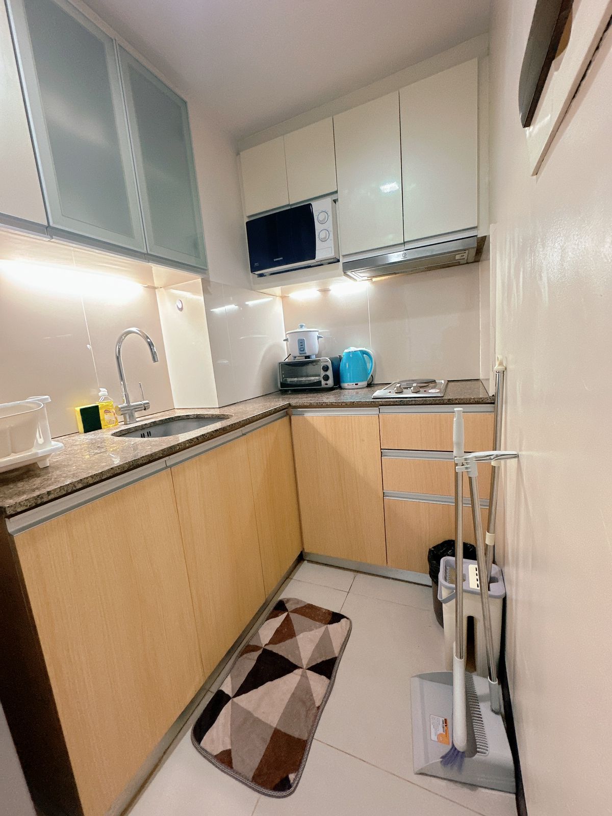 Stay inside the beautiful Tambuli Resort & Spa compound, without the hotel price. • Stylish & clean Japandi-inspired interior • Vanity area w/ hair dryer • Working desk for productivity • Balcony with wooden deck tiles for a cozy outdoor feel • Fresh linens + free extra linens provided • Smart lock for easy self-check-in. Check in anytime after 3PM. • Fully equipped kitchen • Washing machine + drying rack (perfect for longer stays) • Fast 300mbps WiFi + Netflix • Free coffee & welcome basket