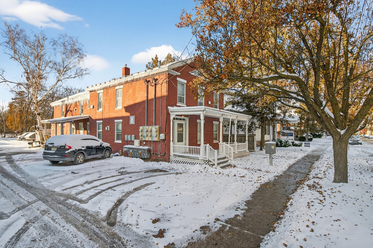 ¡En el centro de Burlington! Apartamento de 1 dormitorio completamente renovado en una casa histórica de 1845. Cocina nueva, planta abierta, futón supercómodo si necesitas una cama adicional. Baño con sensación moderna yuxtapuesto con una clásica bañera con patas. Servicios nuevos con un toque histórico: wifi de alta velocidad, TV de 65 pulgadas, suelos de madera en toda la casa, aire acondicionado y calefacción. A 7 minutos a pie de Church St. Cerca de UVM y Champlain College. 1 plaza de aparcamiento en la calle.