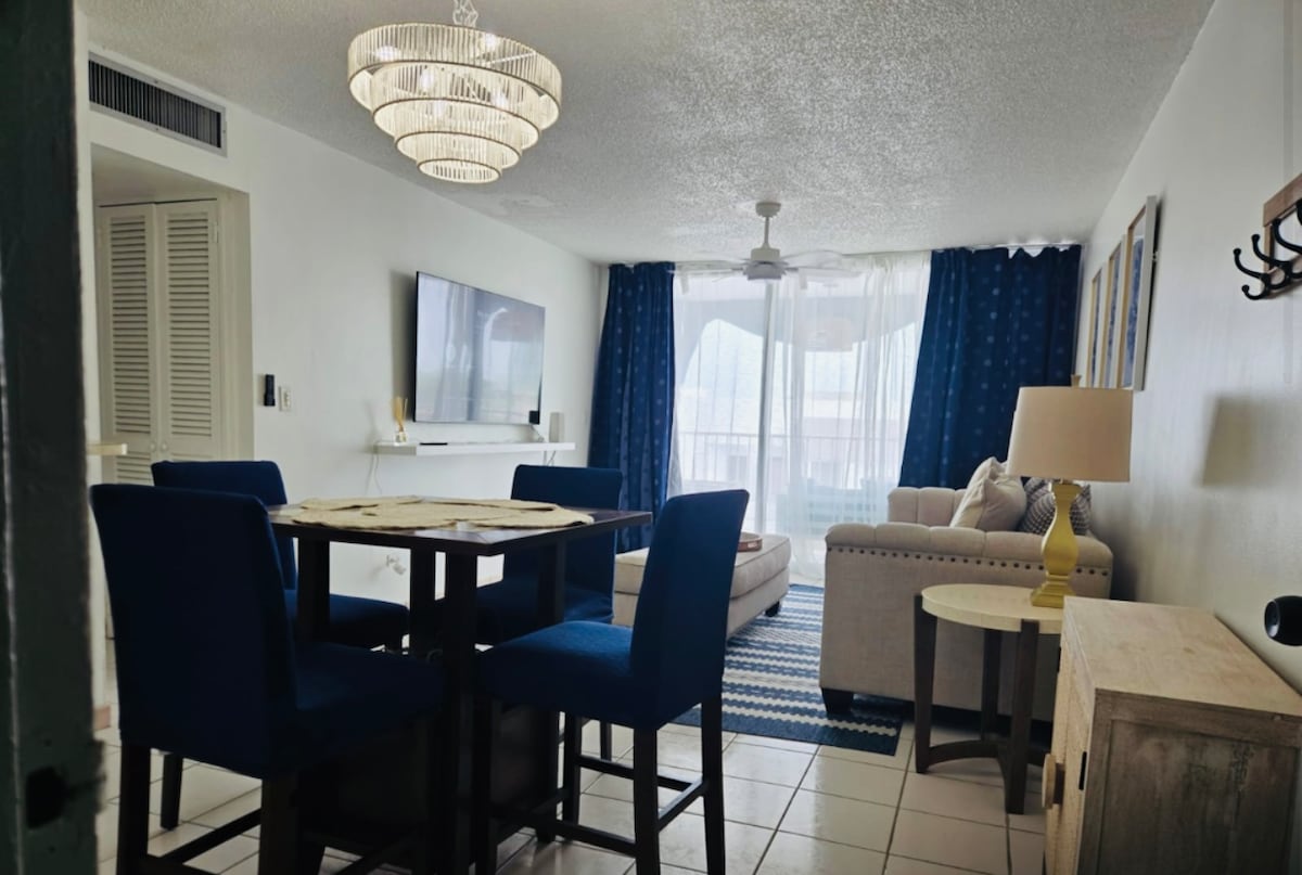 Disfruta de una experiencia relajante y divertida en este céntrico alojamiento. Un apartamento totalmente renovado y equipado con una vista increíble, piscina, famoso acceso a la playa, parque infantil, equipo de ejercicio, wifi de alta velocidad para trabajar y disfrutar, canchas de baloncesto y tenis. Esta ubicación está a poca distancia a pie de varios restaurantes, casinos y farmacias. Además, está cerca de muchas atracciones importantes, centros comerciales y la única selva tropical de los Estados Unidos, «El Yunque». Incluye estacionamiento gratuito y seguridad las 24 horas.