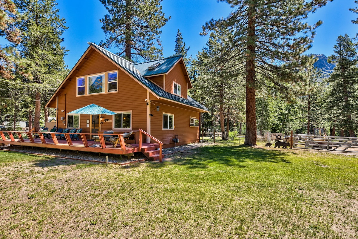 Remodelado en 2018. Dos pisos con techos de vigas de madera, chimenea de gas y cómodas camas. Nuevo techo, pintura exterior y hermosa entrada pavimentada hecha en otoño de 2023. 2 millas a Heavenly, 3 millas a la vida nocturna/casinos, y 1.5 al lago. El parque Bijou y los senderos de los prados están justo al lado del barrio. Los senderos van a todas partes y los paseos por el prado son geniales para todos. La casa está en un barrio tranquilo rodeado de bosques, prados, un parque regional y senderos para bicicletas justo detrás de la casa.