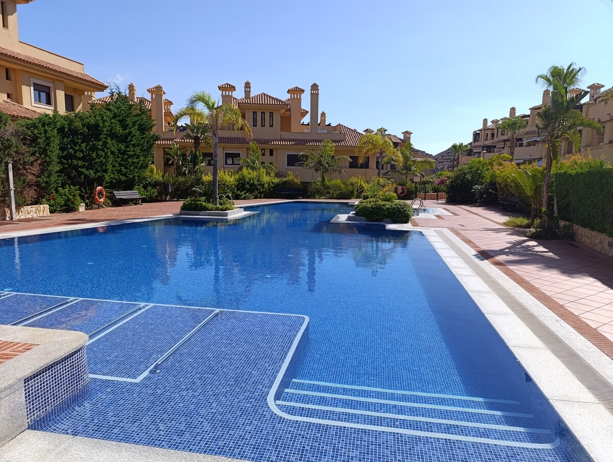 Apartamento bonito y espacioso, tranquilo, sin ruidos, con piscina y amplia terraza, donde podrás descansar, tomar el sol, bañarte y hacer barbacoas, y además, a escasos 5 minutos a pie de la playa del Hornillo, y a 10 de la de Los Cocedores del Hornillo y Las Delicias. Incluye plaza de garaje y wifi gratis! Y para los muy calurosos, no dudéis en poner el aire acondicionado! (Vivienda inscrita en el Registro de Empresas y Actividades Turísticas de la Región de Murcia con número VV.MU.2726-1)