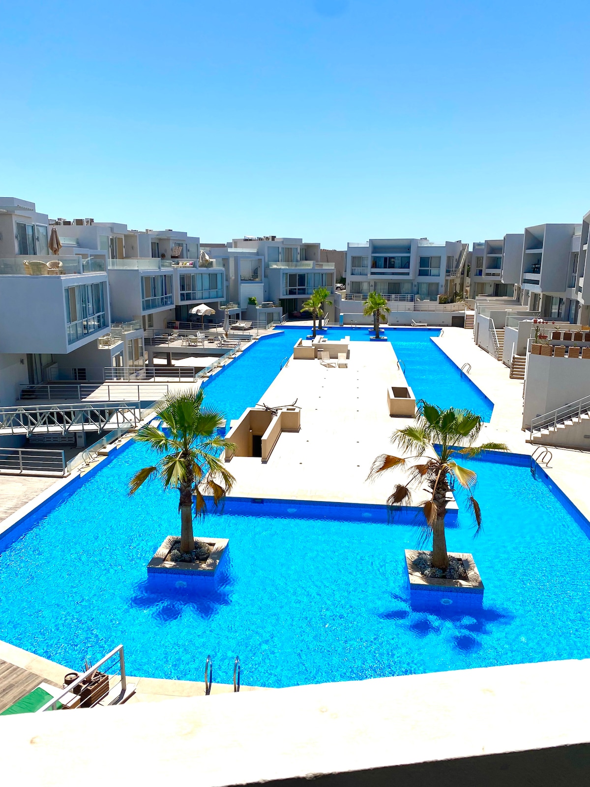 Bienvenido a nuestro exquisito departamento de 2 camas con vistas a la piscina, ubicado en el encantador pueblo de Gouna. El apartamento es una suite en planta baja con acceso directo a una piscina y jacuzzi de estilo infinito. Sal y disfruta de tu balcón privado y de relajantes asientos al aire libre. A pocos pasos hay acceso a una playa privada y a tu propio jardín verde. El departamento se ubica en el único complejo frente a la playa de Gouna, con seguridad para que puedas relajarte y disfrutar de tus vacaciones con tranquilidad.