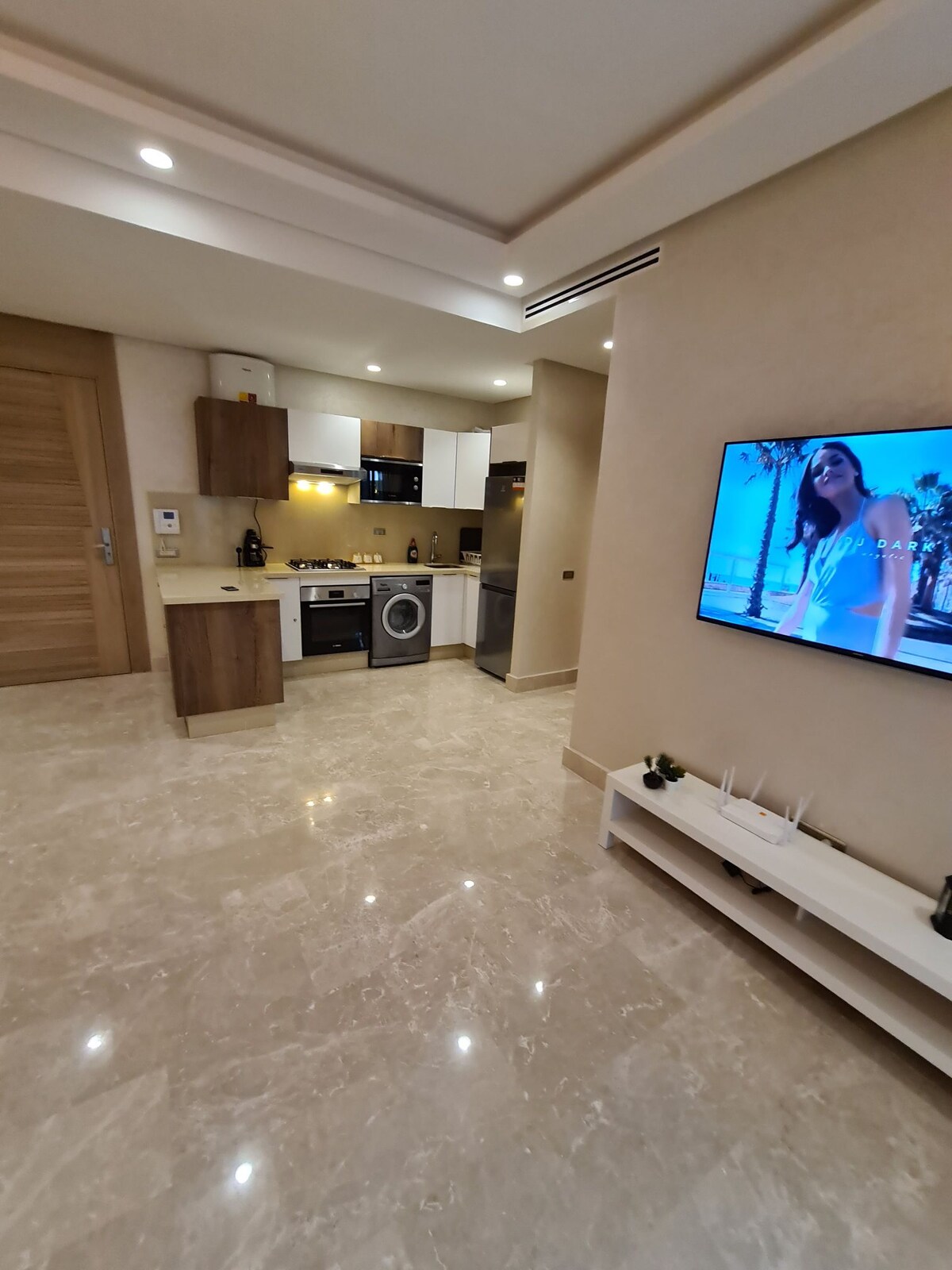 ¡Perla 403💎, un remanso de paz donde la elegancia de una residencia moderna se combina con la comodidad de los hoteles de 5* en el corazón de Casablanca! Relájese en una amplia sala de estar de diseño moderno, equipada con Smart TV de 55’ con Netflix e IPTV para noches de relajación absoluta. La habitación, un verdadero nido acogedor, le promete noches tranquilas y reparadoras ☁️ ¡Desde su balcón privado, admire las espléndidas puestas de sol sobre la ciudad, haciendo que cada momento de su estadía sea inolvidable! ✨