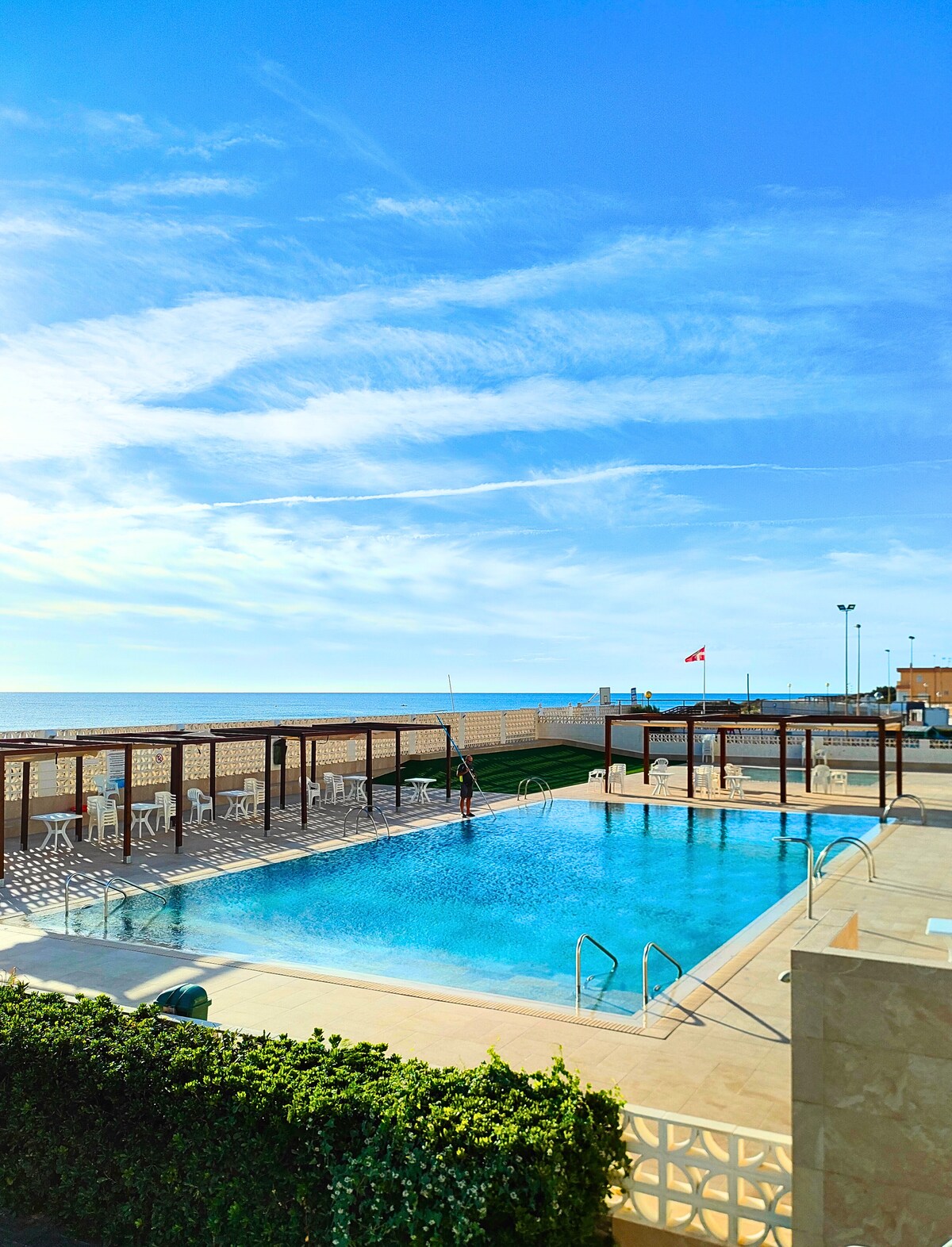 Disfruta de una experiencia premium en este apartamento en primera línea de playa. Con capacidad para 8 personas, cuenta con 3 dormitorios, 2 baños, un salón-comedor con Smart TV 65" y una cocina totalmente equipada. Relájate con una bebida en la amplia terraza con vistas al mar o refréscate en las 5 piscinas del complejo. Todo el apartamento está equipado con aire acondicionado, ofreciendo la comodidad perfecta para tus vacaciones. ¡Tu hogar ideal frente al Mediterráneo! Fiestas no permitidas