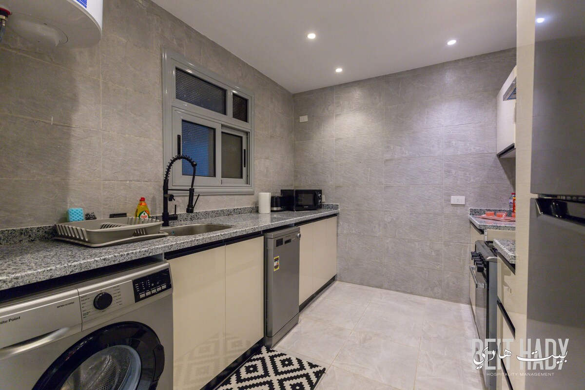 ✨ Alójate en un apartamento moderno y recién amueblado en One Katameya Compound ✨ Perfecto para familias, parejas, amigos o viajeros de negocios. Ubicación 📍 privilegiada en la carretera de circunvalación, a solo 5 minutos del Cairo Festival City Mall y cerca de Maadi y New Cairo. 🏡 Disfruta de cómodos muebles, una cocina totalmente equipada, wifi de alta velocidad, TV inteligente y aire acondicionado. Un alojamiento elegante y céntrico que combina comodidad, conveniencia y valor.