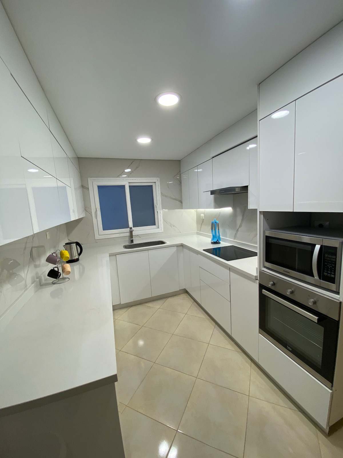 Disfruta de toda la familia en este elegante espacio. Se encuentra en un lugar especial en Nuevo Egipto y cerca del aeropuerto, centros comerciales famosos, restaurantes, cafeterías, lugares de entretenimiento y no está lejos del centro de la ciudad y de lugares arqueológicos en el corazón de El Cairo. Este alojamiento también es tranquilo y cuenta con todos los servicios y tiene una cocina grande y equipada. Este espacio es prestigioso, moderno y estilizado, hermosos colores y está equipado con aire acondicionado central caliente y fresco, y se puede controlar con muchos niveles que se ajustan a todos los gustos.