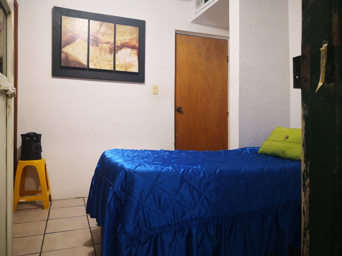 Es un espacio céntrico,(5 minutos del Consulado), muy acogedor, privado, amplio, con clima para invierno y verano, recámara muy amplia con cama cómoda queen size, 1 sofá cama, closeth grande, aire acondicionado o enfriador evaporativo, calefacción, cable, internet, cocina con todo lo necesario, baño, patio, cochera privada, todo lo necesario para que pases una estancia agradable.