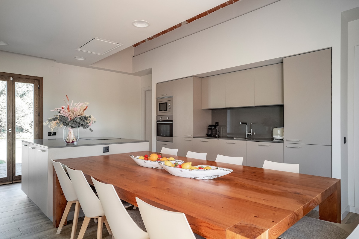 El aire puro entrando por sus ventanales, sus vistas de escándalo, sus atardeceres junto a la piscina, su rústica decoración cuidada hasta el más mínimo detalle... Todo esto y mucho más en un alojamiento excepcional con piscina y barbacoa para viajeros en busca de paz. A 28km de Barcelona. Situada en una tranquila zona residencial de Vallirana, en el Penedés, cuenta con la ubicación ideal para disfrutar de la naturaleza en su estado más auténtico, realizar rutas senderistas, practicar ciclismo de montaña o acampar al aire libre. Recomendamos alquilar coches. Importante: al tratarse de espacios muy amplios, el wifi sólo llega a algunas partes de la casa. Situada en una tranquila zona residencial de Vallirana, en el Penedés, cuenta con la ubicación ideal para disfrutar de la naturaleza en su estado más auténtico, realizar rutas senderistas, practicar ciclismo de montaña o acampar al aire libre. En tan sólo 30 minutos puedes llegar a las playas de Sitges, a Barcelona o al aeropuerto del Prat-Barcelona.