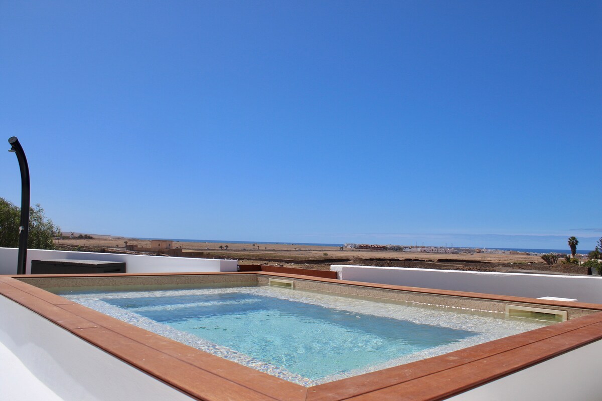 Encantador alojamiento situado cerca del idílico pueblo pesquero de El Cotillo y de algunas de las mejores playas de la isla. Ubicado en una zona muy tranquila, ofrece vistas a la montaña y una piscina privada de agua salada para uso exclusivo de los huéspedes. A solo cinco minutos en coche o diez a pie del centro, combina descanso, naturaleza, surf, gastronomía y espectaculares puestas de sol.