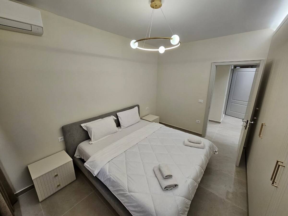 Un apartamento nuevo con un diseño encantador y relajante te hará sentir como en casa. Justo al lado del Nuevo Bazar, a 6 minutos del centro. Cerca del centro comercial Toptani, edificios gubernamentales, museos, ópera, centro médico. Apartamento de 110 m2, 3er piso con ascensor, totalmente amueblado, tiene 1 dormitorio (doble malo) 1 dormitorio (2 camas individuales), cocina (horno, lavavajillas, etc.) amplia sala de estar, 2 baños, estacionamiento gratuito incluido. TV, aire acondicionado en todas las habitaciones, lavavajillas, lavadora.