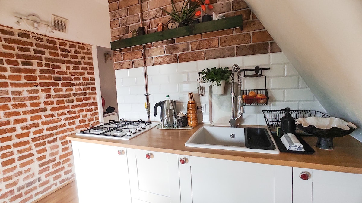 Przytulne mieszkanie na poddaszu, z pięknym widokiem, w samym sercu Starego Miasta. Komfortowe dla 1 lub 2 osób, idealne na zwiedzanie miasta, główne atrakcje w zasięgu ręki WiFi, wyposażona kuchnia, lodowka, pralka, wanna, ręczniki. Mieszkanie czyste i ciepłe. Dobra komunikacja, blisko przystanek tramwajowy, autobusowy, dworzec pkp i skm. Jesteśmy dostępni caly czas i służymy pomocą dla naszych gości. 4.piętro brak windy