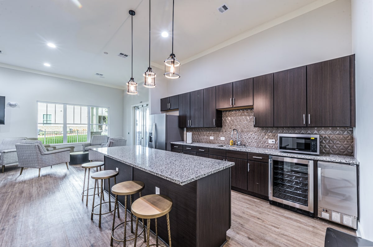 ¡Te damos la bienvenida a la vida de lujo! Nuestros espaciosos diseños, cocinas modernas con electrodomésticos de alta gama y dormitorios y baños serenos. Los huéspedes disfrutan de acceso a servicios excepcionales como nuestro wifi de alta velocidad, basura valet, nuestro gimnasio de última generación, parrillas al aire libre y piscina de temporada. ¡Ya sea que estés haciendo ejercicio, relajándote junto a la piscina o entreteniéndote en los espacios comunitarios y un amplio estacionamiento gratuito! Tendrás todo el apartamento para ti, que es 1 baño completo y 1 dormitorio espacioso.