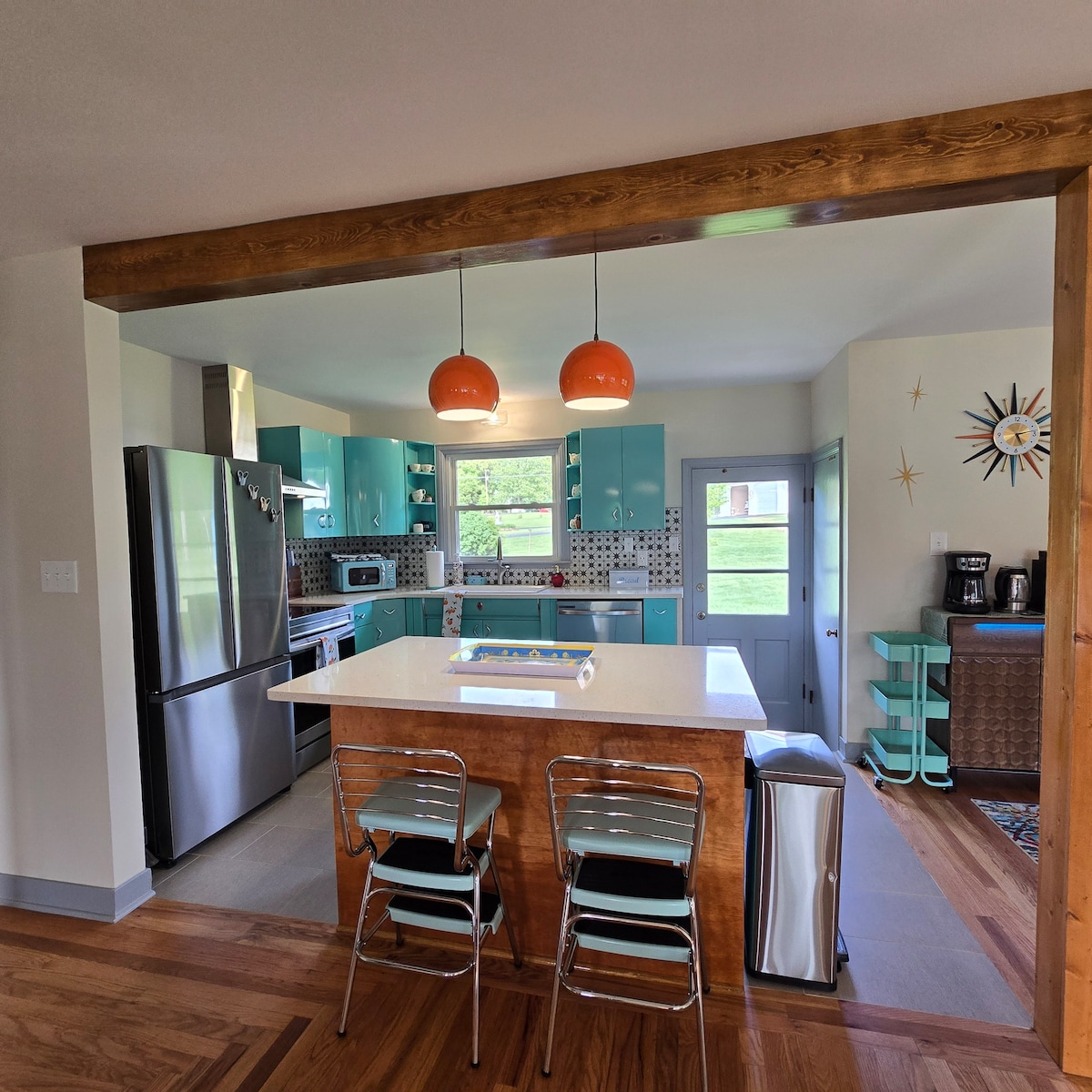Experimenta el encanto moderno y minimalista de mediados de siglo en nuestra acogedora casa de 2 dormitorios y 2 baños a solo unos kilómetros del centro de la ciudad, Etown Sports Park, Freeman Lake y el hospital, lo que la hace perfecta tanto para enfermeras de viaje como para familias. Disfruta de una cocina totalmente equipada y de un espacio al aire libre con parrilla y chimenea. Esta casa está convenientemente ubicada cerca del centro de Etown, donde puedes explorar tiendas, restaurantes y parques locales. Nuestra acogedora casa moderna de mediados de siglo es el alojamiento perfecto para tu visita a Elizabethtown, KY.