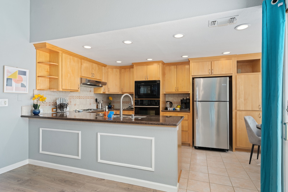 5 dormitorios, 3 baños, dos suites con cama king: capacidad para hasta 12 personas. Ubicado en un tranquilo vecindario de Elk Grove, con todo lo que necesita cerca. Una cocina totalmente equipada, una piscina de agua salada y una chimenea en la parte trasera. Ideal para familias y grupos de amigos que vienen para una escapada, un funeral, una boda, un viaje de negocios, un seminario o para dejar a alguien en la universidad. Senderos para caminar, Walmart a pocos pasos, Costco a cuatro minutos, restaurantes cercanos. Solo acceso sin llave, carga para vehículos eléctricos, Wi-Fi rápido y cámaras exteriores. Venga a descansar.