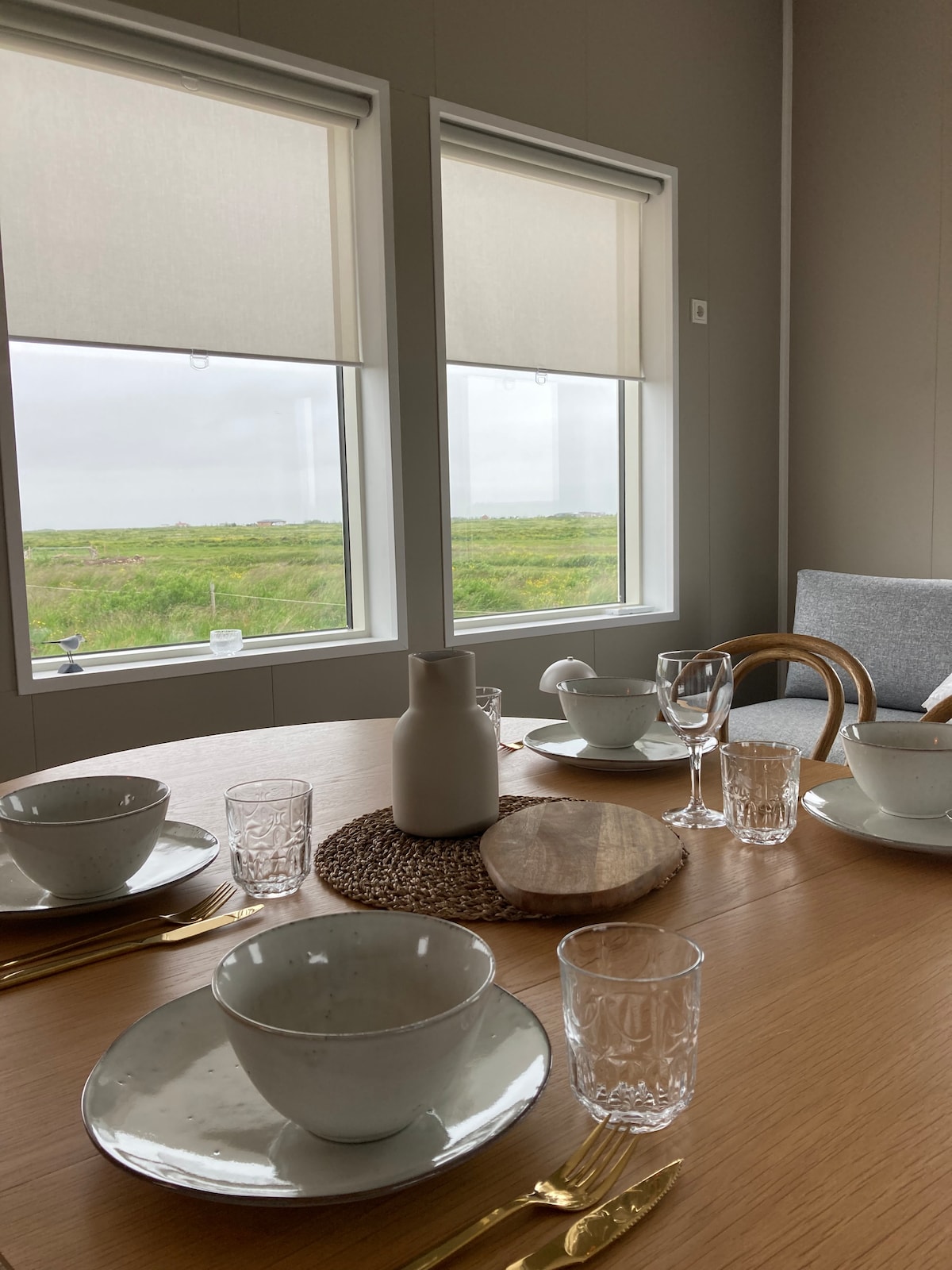 Disfruta de un lujo y comodidad incomparables en una playa de arena negra con hermosas vistas alrededor. Hay una cocina totalmente equipada y un baño en nuestra casa de servicio compartida en la propiedad, a unos 200 metros de la cúpula, así como cabañas de aseo a poca distancia a pie de la cúpula.