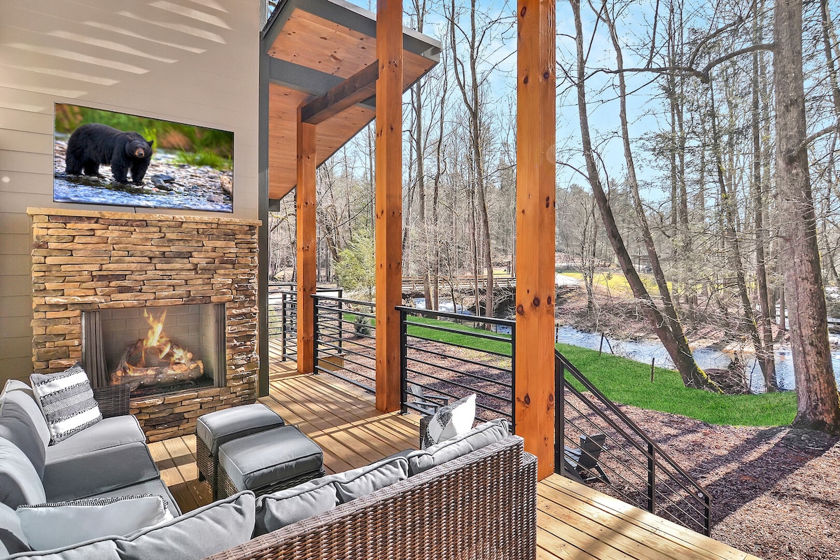 Cabaña privada junto al río con sala de juegos cerca de Blue Ridge