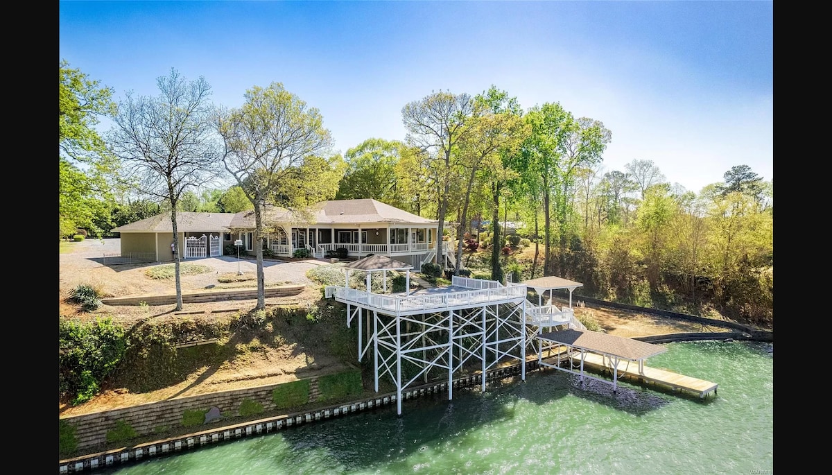 Relájate con toda la familia en esta tranquila cabaña en una cala protegida. Cabaña recientemente renovada de 4 dormitorios y 3 baños frente al lago, ubicada en la zona de la bahía de Kowaliga, en el lado sur del lago Martin, cerca de todos los puntos de interés del lago Martin. Un montón de espacio al aire libre con una terraza superior e inferior para disfrutar de un café mientras contemplas las hermosas vistas del lago o disfrutas de una comida al aire libre con familiares o amigos. Siéntate en el muelle o en el columpio junto al lago mientras ves a los niños jugar y nadar en el agua.