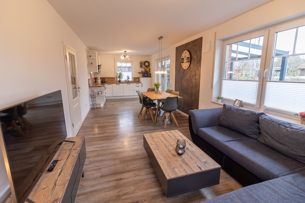 Llegar y sentirse bien. El aire fresco del mar del Norte, que está a pocos kilómetros de distancia, le dará la bienvenida con una brisa. El nuevo apartamento de vacaciones de 80 metros cuadrados se encuentra en la primera planta de nuestra casa y está completamente a su disposición. Es acogedor y está amueblado con buen gusto. En nuestro jardín, que puede utilizar, también hay una parrilla y un gran brasero a su disposición. Las bicicletas se pueden aparcar de forma segura.
