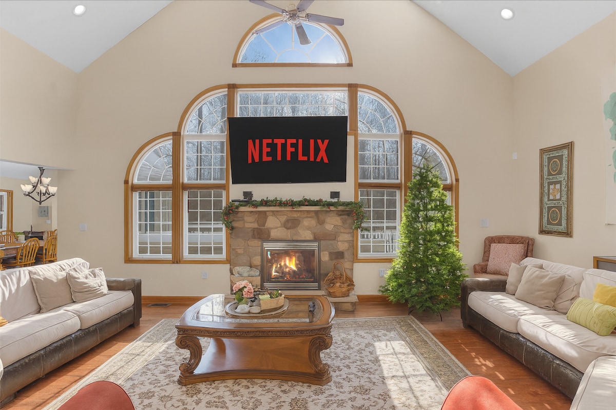 «Hugo Haus» ofrece acceso al resort con piscina de temporada, lago, playa, parque infantil, canchas de tenis y baloncesto. ★ «Extremadamente limpio, bien surtido y en una comunidad muy tranquila y segura». ☞ Patio trasero con terraza + parrilla Weber BBQ Loft de☞ juegos con arcade Ms Pac-Man ☞ Cocina totalmente equipada y abastecida Televisores inteligentes de☞ 65" + 40" con Netflix Entrada de ☞ → estacionamiento (5 coches) ☞ Altavoz Bluetooth Klipsch ☞ Chimenea de gas interior ☞ 707 Mbps 7 minutos → DT Albrightsville (cafés, restaurantes, tiendas) 14 minutos → Big Boulder Mountain