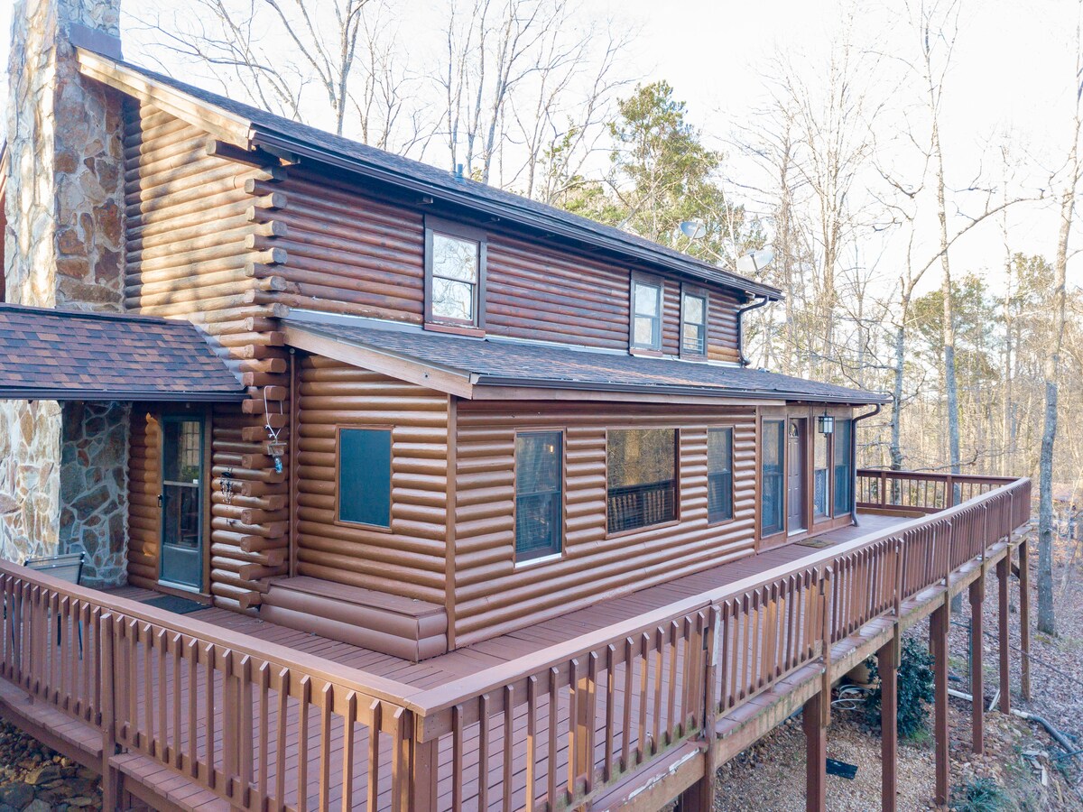La espaciosa cabaña ofrece vistas panorámicas y aislamiento. A una milla del complejo deportivo Lake Point. Muy cerca del lago Allatoona. Cómoda cabaña con un toque moderno con chimenea rústica de leña, chimenea al aire libre y lugar perfecto para una escapada rápida y romántica, tiempo en familia o simplemente tiempo para desconectar del bullicio de la vida. Cerca de restaurantes y tiendas de comestibles. Actividades para los niños y toda la familia a la vuelta de la esquina.