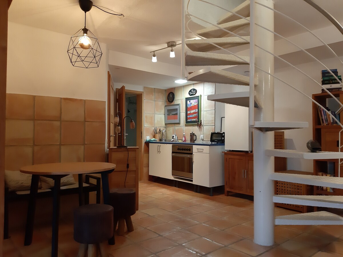 Diese stilvolle 3-Zimmer-Wohnung mit 90qm Wohnfläche, komplett saniert und renoviert, eignet sich perfekt für Alleinreisende, Paare und Gruppen bis 4 Personen und Familien. Schlafzimmer 1: ein Doppelbett (180x200). Schlafzimmer 2: zwei Einzelbetten (90x200) und kleine Fitness-Ecke mit SlimBeam-Seilzugsystem, welches allen Gästen mit Kenntnissen zur Verfügung steht, verschiedene Body-Tubes sowie einer Yoga/Pilates-Matte. Die großzügige Wohnküche ist mit allen notwendigen Utensilien ausgestattet.