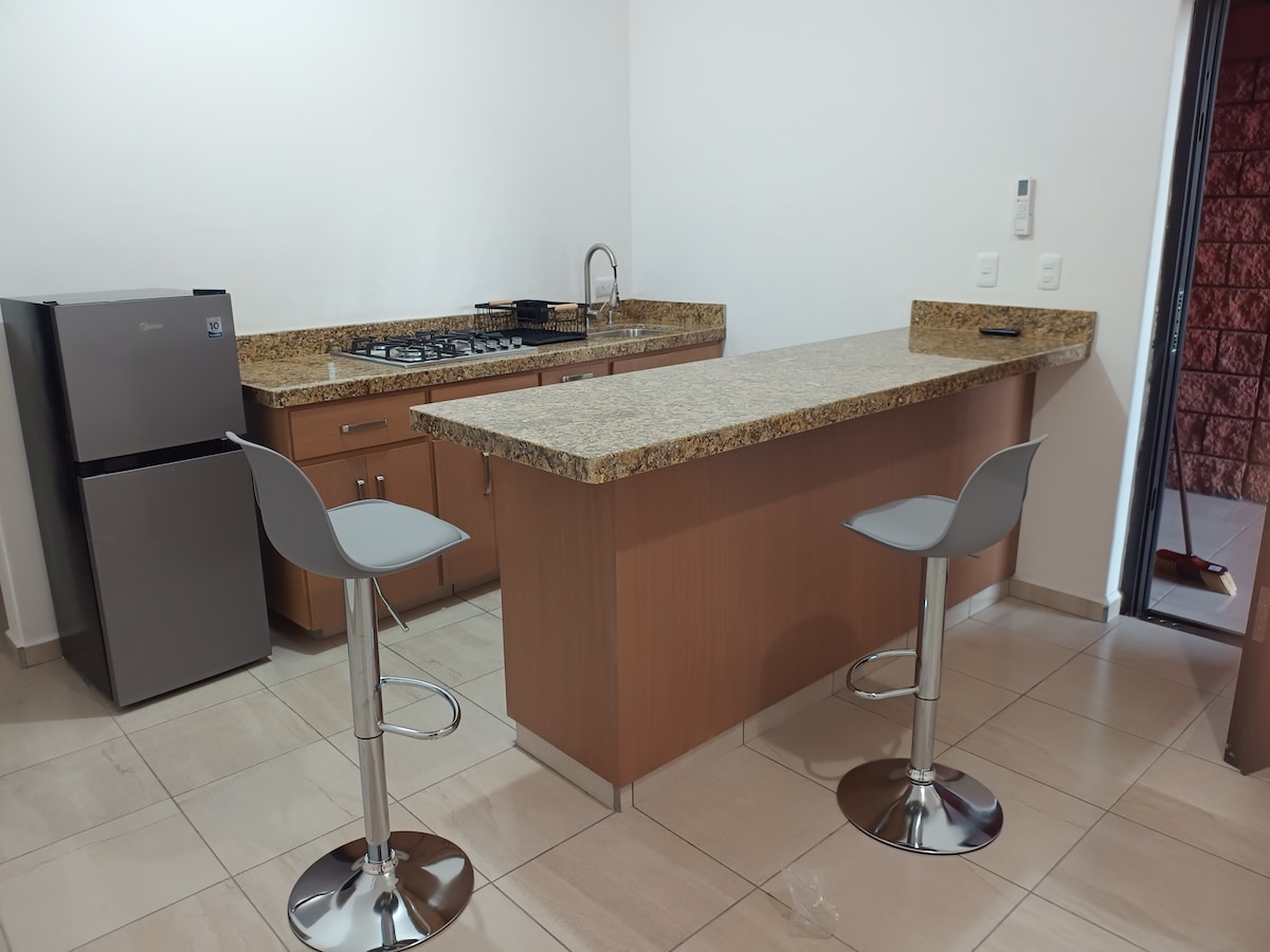 Departamento cómodo de 2 recamaras de fácil acceso, a 200 mts. de centro comercial, a 5 minutos del centro la ciudad, a 1 km del centro de salud y, a 13 minutos de la playa.