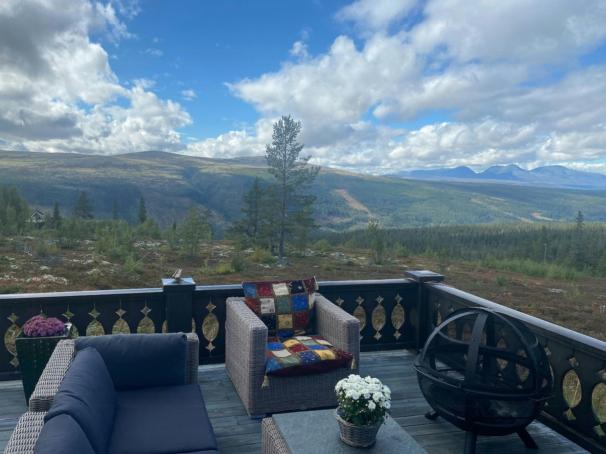 Esta es una acogedora casa de campo con buenas habitaciones, amplia sala de estar, cocina práctica y bien equipada, baño y 3 dormitorios. Además, el anexo tiene una sala de estar/dormitorio y baño. También hay una sauna en la cabaña. ¡Aquí hay mucho espacio para familiares y amigos! Exterior hay una gran terraza con gran vista, chimenea y bonitas condiciones para el sol. Puedes conducir hasta la puerta y caminar directamente hacia las montañas. Gran lugar para perros y hay una cama grande para perros en la sala de estar.
