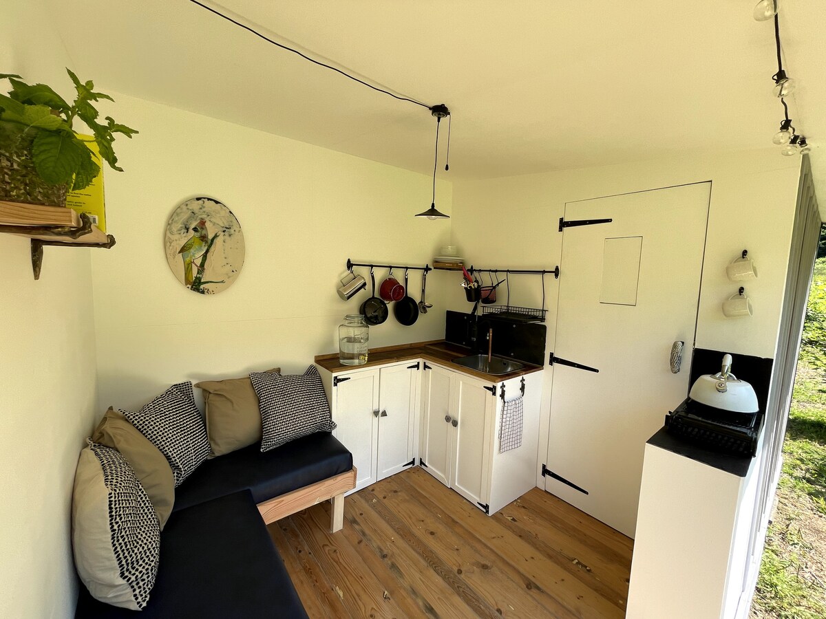 Te damos la bienvenida a Outside the Box PQ. Este espacio es una cabaña de contenedores totalmente fuera de la red, construida por mí mismo. La cabaña está orientada al oeste y al sur, con vistas al mar y una gran cantidad de luz natural. Aquí tienes todo lo que necesitas para relajarte de verdad. Autónoma, con nevera de 12 V, iluminación y puntos de carga USB, todo alimentado por paneles solares. Un sistema de agua caliente de gas y fogones para cocinar. Ubicado a una gran distancia de cualquier edificio, tendrás total privacidad. Situada a 10 minutos a pie de la costa y del puerto de Port Quin.